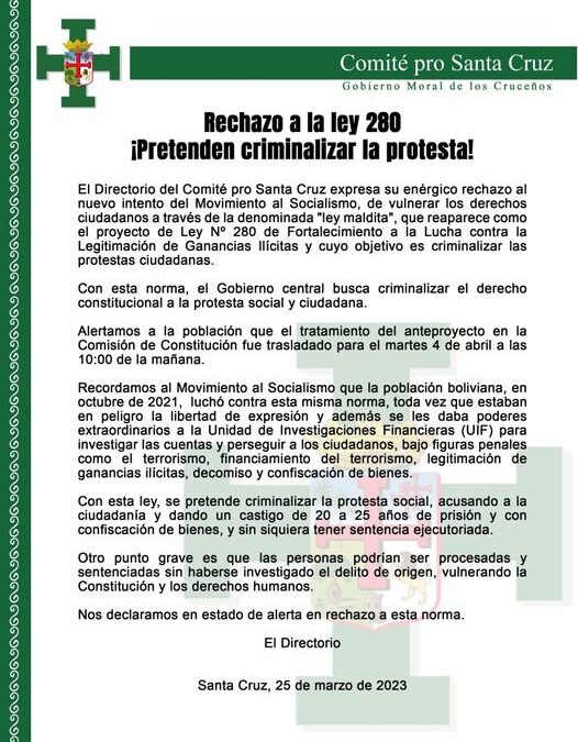 Rechazo a la Ley 280 ¡Pretenden Criminalizar la protesta!